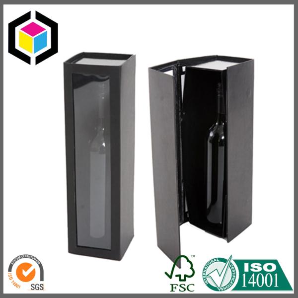 Shiny Black Color Printing Wine Box; Food Grade Plastic Window Paper Box Images